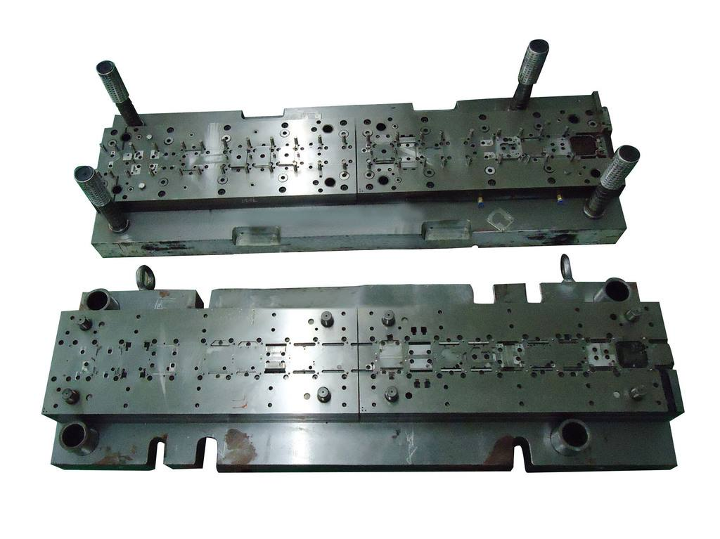 對(duì)策:a、.解決跳屑、屑料阻塞、卡模等問題; b、注意送料,及時(shí)修剪料帶,及時(shí)清理模具;c、修改設(shè)計(jì),增加凸模整體強(qiáng)度,減短凹模直刃部尺寸,注意凸模刃部端面修出斜度或弧形,細(xì)小部后切;d、小凸模長(zhǎng)度磨短相對(duì)大凸模一個(gè)料厚以上;e、修改設(shè)計(jì);f、控制凸凹模加工精度或修改設(shè)計(jì)間隙,細(xì)小部沖切間隙適當(dāng)加大;g、調(diào)整沖壓油滴油量或更換油種;h、檢查各成形件精度,并施以調(diào)整或更換,控制加工精度;i、研修或更換;j、更換導(dǎo)柱、導(dǎo)套,注意日常保養(yǎng);k、更換使用材質(zhì),使用合適硬度;i、更換導(dǎo)料件; m、修正,墊片數(shù)盡可少,且使用鋼墊,凹模下墊片需墊在墊塊下面。